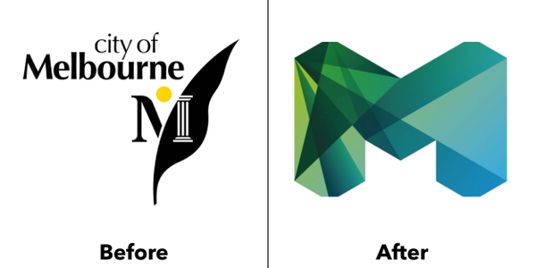 Một bộ nhận diện thương hiệu làm lại khác là của City of Melbourne vào năm 2009. Thành phố Melbourne đã từng có một logo rất rất “an toàn”. Nó bao gồm tất tần tật những yếu tố làm nên một thành phố. Từ “city”: có, “mặt trời”: có. “cột nhà”: có.